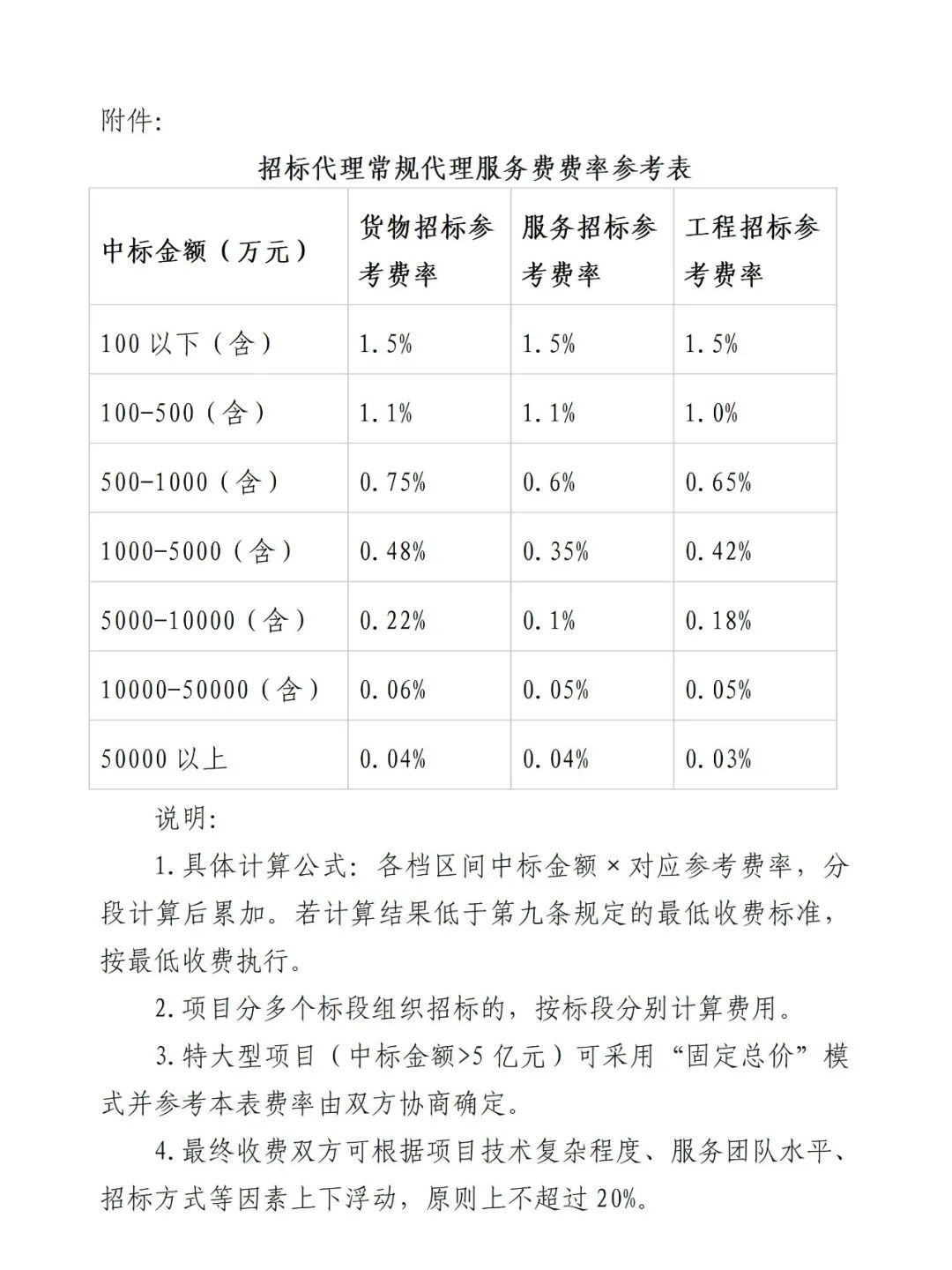 附件:招标代理常规代理服务费费率参考表